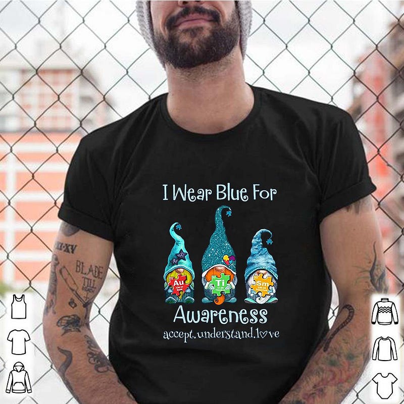 Gnomes I wear blue for awareness accept understand love elements shirt, Hoodie, Sweater, Ladie Tee, Vneck, Bellaflowy, Kids Shirt, Unisex and Tank Top, T-shirt